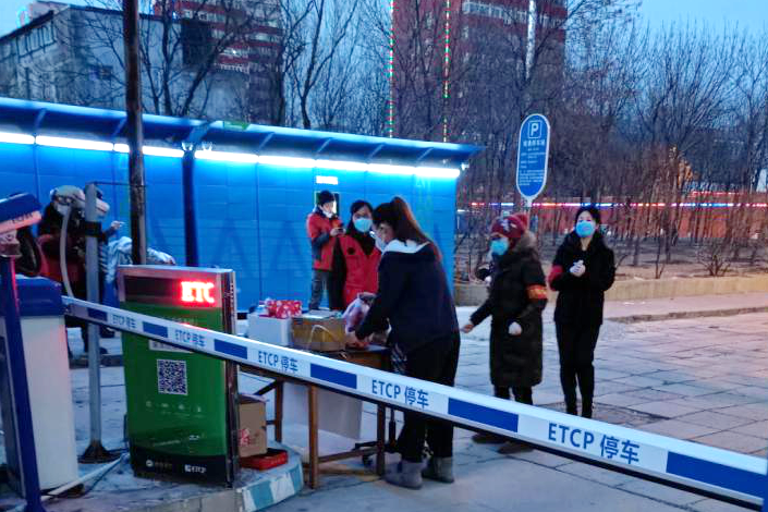 侯梦楠和家人为村里检测点捐赠物资
