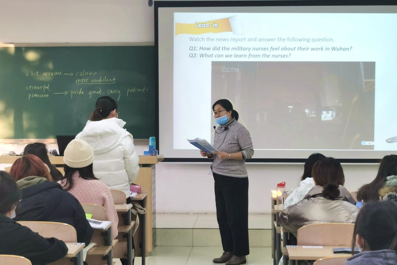 为切实推进“三全育人”综合改革,加强课程思政建设,12月15日上午,外语部在康庄校区207教室举办了一场生动的大学英语课程思政公开课教学观摩研讨活动。外语部主任孙边旗,党支部书记杨雷,第一、二教研室主任张瑾和赵海芳及其他院系部分教师参加了该活动。