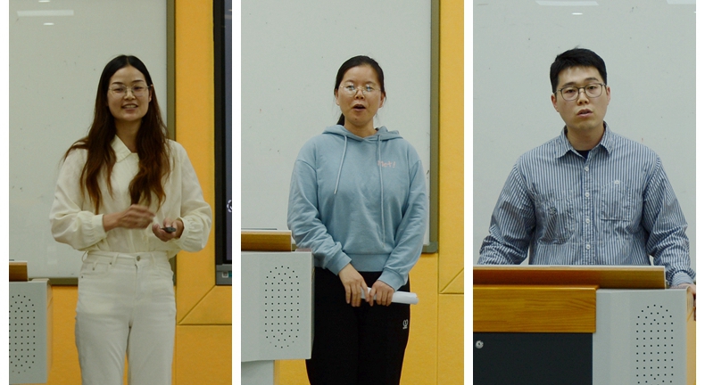 三位教师分别围绕“交流科研经验,提升科研能力”这一主题进行经验分享。侯兰兰讲授了在科研项目申请书撰写上的方法与技巧。她强调选题是判断研究者问题意识的核心指标,要不停转换思考角度,瞄准学术前沿和国家战略需要进行项目选题。王飞与青年教师分享了参加科研培训学习的感受。她建议青年教师要多参加各类培训,学习成功的经验,结识志同道合的伙伴,谋求合作的机会。 杜宜浩谈及以教促研、以研促教的心得体会。他表示要协调好教学与科研的关系,就是要主动寻求科研与教学的密切结合点,实现教研相长,学思并进。