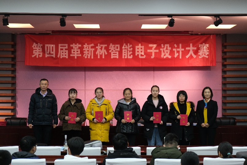 近日,历经1个月的赛程,信息工程学院第四届革新杯智能电子设计大赛圆满落幕。12月10日下午,在教A楼报告厅,举行了第四届革新杯智能电子设计大赛颁奖仪式。学生处副处长王新营,信息工程学院党委副书记胡婷,北京革新创展科技有限公司总经理沙时辉、销售部经理张薇薇,智能科学与技术专业负责人唐英杰,竞赛指导教师徐长波,大学生科技协会和参赛获奖学生代表参会。