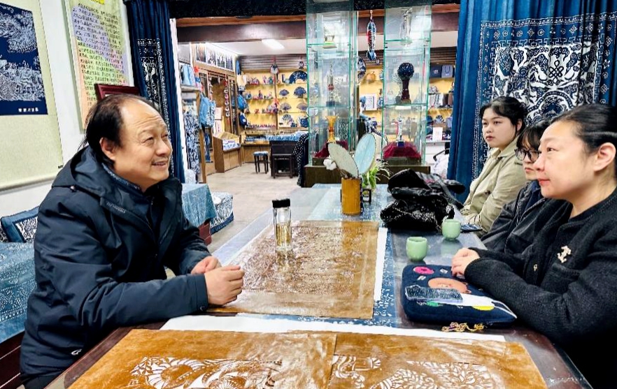 考察南通大学蓝印花布研究所