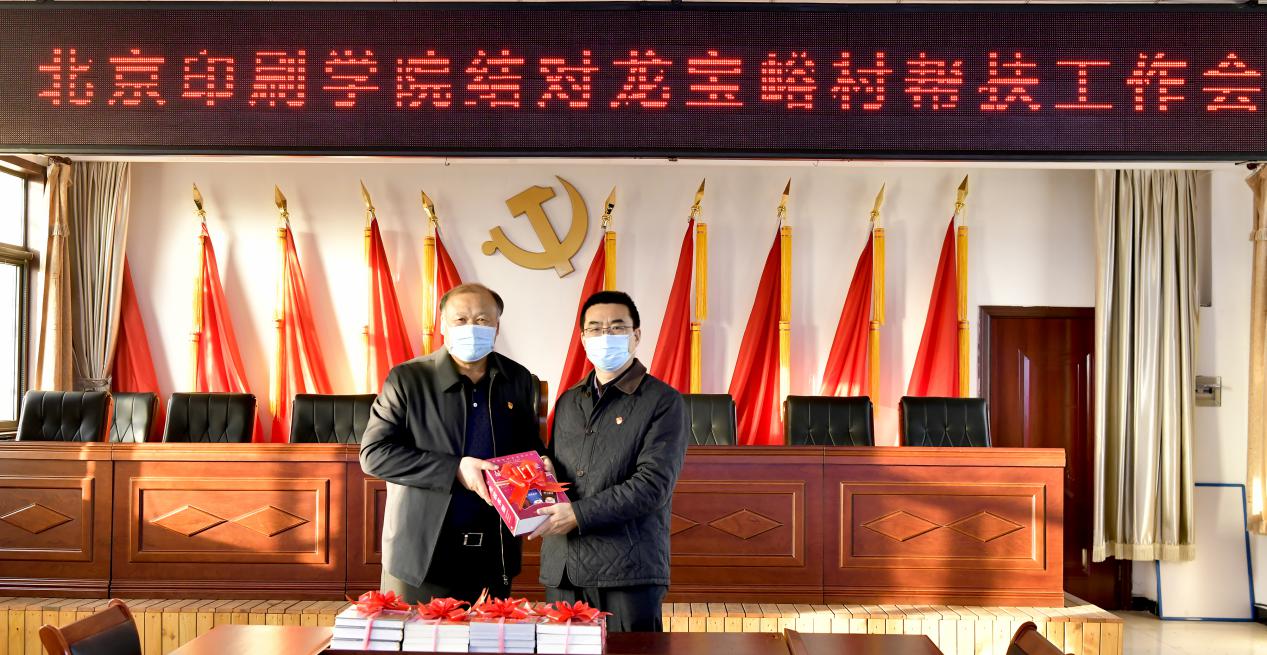 刘尊忠代表学校党政和全体师生送去新年问候和美好祝福,肯定了龙宝峪村在推动扶贫项目落实工作中的思路及规划,赞扬了积极做好扶贫工作取得的成效。他谈到,2020年是脱贫攻坚收官之年,也是学校和龙宝峪村结对三周年,三年来我们开展了卓有成效的工作。他表示,对龙宝峪村“引智帮扶”是学校服务首都建设义不容辞的责任使命,学校将一如既往发挥专业和智力等方面的资源优势,坚持可持续发展,做好文化工程、农家书屋、实习写生基地和红色“1+1”党支部结对扶贫等方面的推进工作,确保全面打赢脱贫攻坚收官之战。