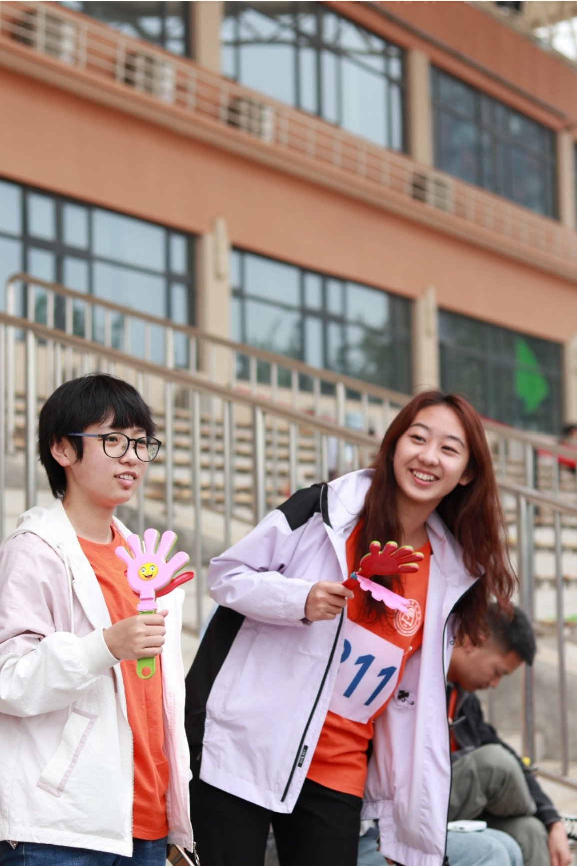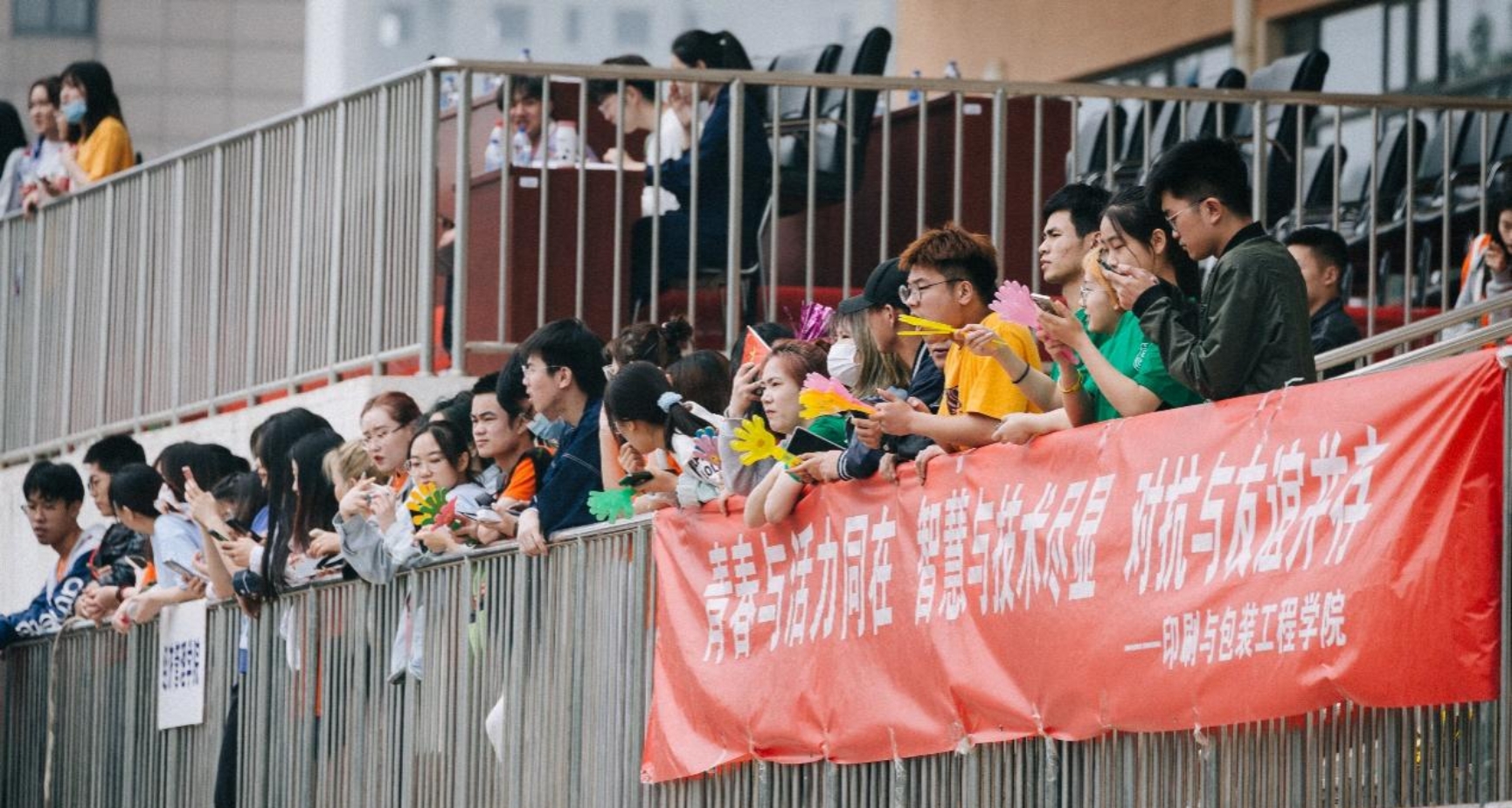 新闻出版学院的夏天同学正在看台上为运动员呐喊。她说:“文明其精神,野蛮其体魄。我们青年人就要多参加体育锻炼,健康成长,才能更好地承担使命,不负重托。”