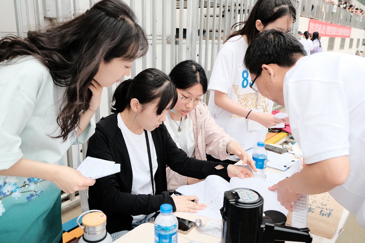 “我的工作需要更多的耐心与热情,虽然很累,但很有成就感。”来自经管学院的王婷婷同学是本次校级运动会的检录志愿者之一,她的工作主要是提醒运动员提前入场并且进行签到。