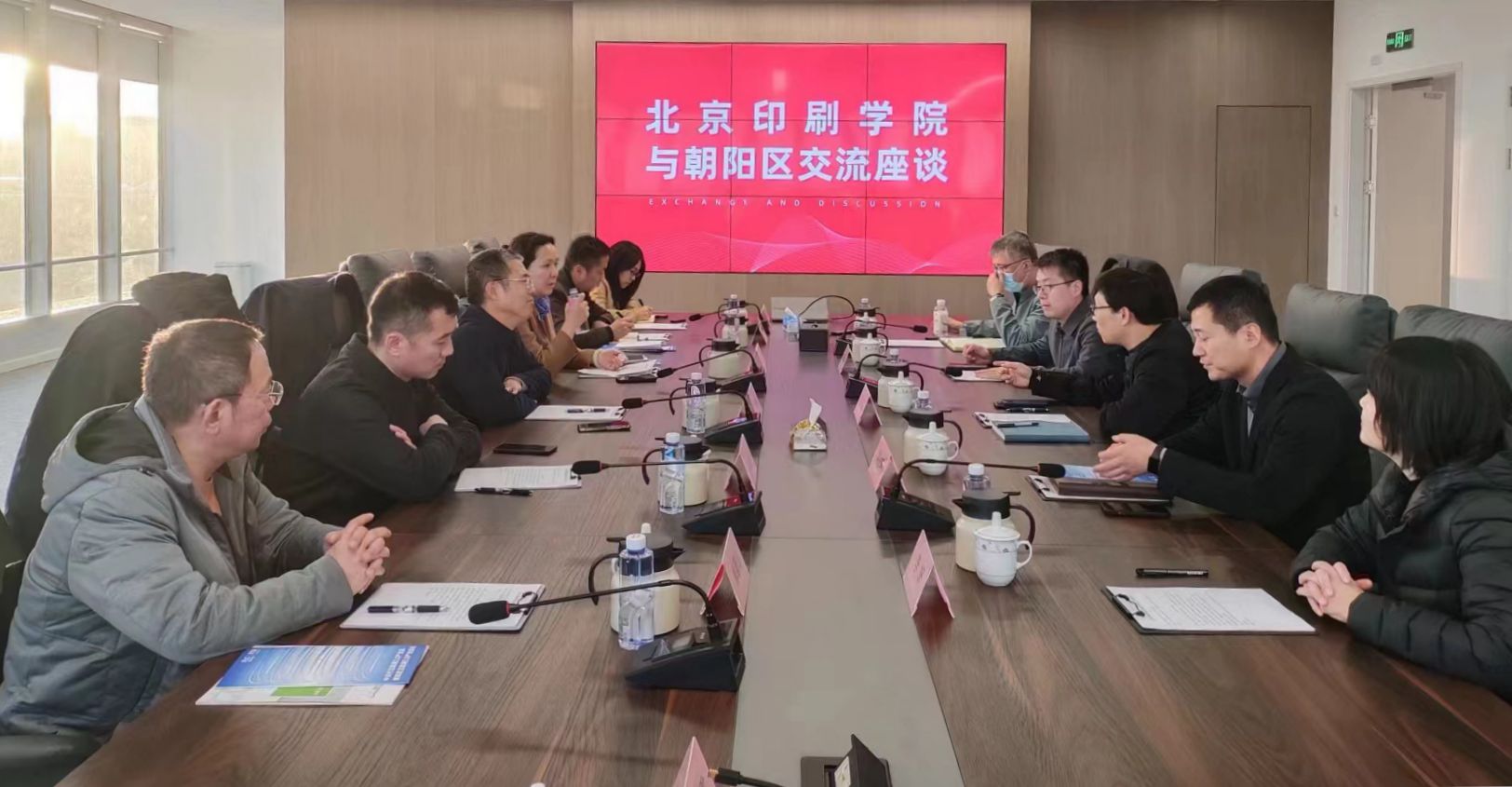 刘杰民代表学校感谢朝阳区对此次调研活动的精心安排和大力支持,简要介绍了学校的发展历程、办学定位和学科特色,以及在积极服务文化强国、北京“四个中心”功能建设方面的主要做法,并重点介绍了学校近年来在大学科技园、文化创意园区和印刷示范创新园区建设的进展。他表示,朝阳区在创新资源聚集、产业政策引导、科技园区建设等方面具有前瞻性强、文化底蕴深厚、产业发展后劲强劲等特点,学校在新闻出版、创意设计等特色学科设置上与朝阳区发展定位的契合度非常高,希望未来双方能够在政产学研用协同创新、产业园区共建、创新创业人才培养等多个领域深入开展交流与合作。