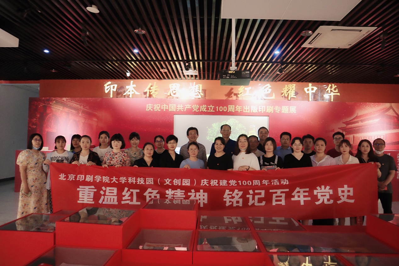 6月16日下午,学校大学科技园(文创园)联合校产党支部举办“重温红色精神,铭记百年党史”的党史学习教育支部主题活动,园区企业党员以及员工代表与支部党员共同参观中国印刷博物馆的“印本传思想 红色耀中华 ”庆祝中国共产党成立100周年出版印刷专题展。