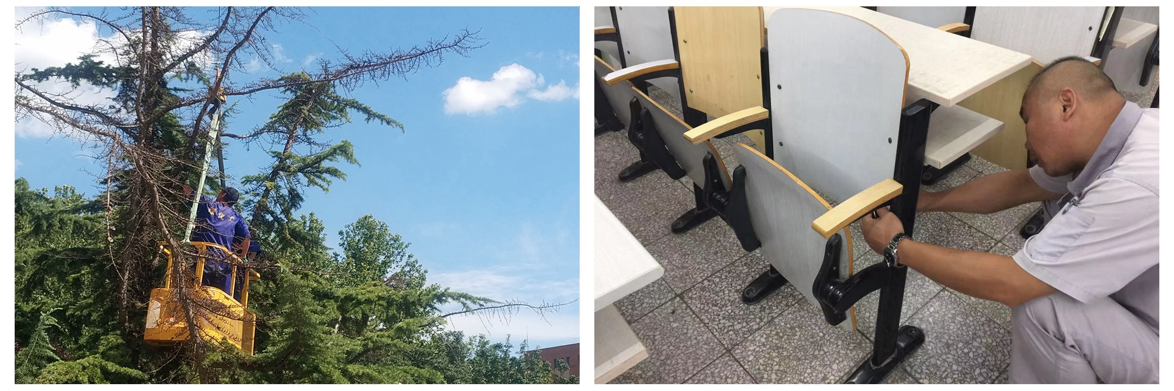今年雨水比往年多,面对一场又一场的暴雨,后勤处领导班子深入校园各个情况现场,物业相关工作人员坚守岗位,查验漏水点、及时清理雨水井、散水及落叶,使三个校区安然渡过汛期,清除公共场合、桌椅灰尘、清洗教室电风扇、修缮校内损坏道路、检修水电管气等设施、签收新生公寓物品,为新学期开学做好保障。