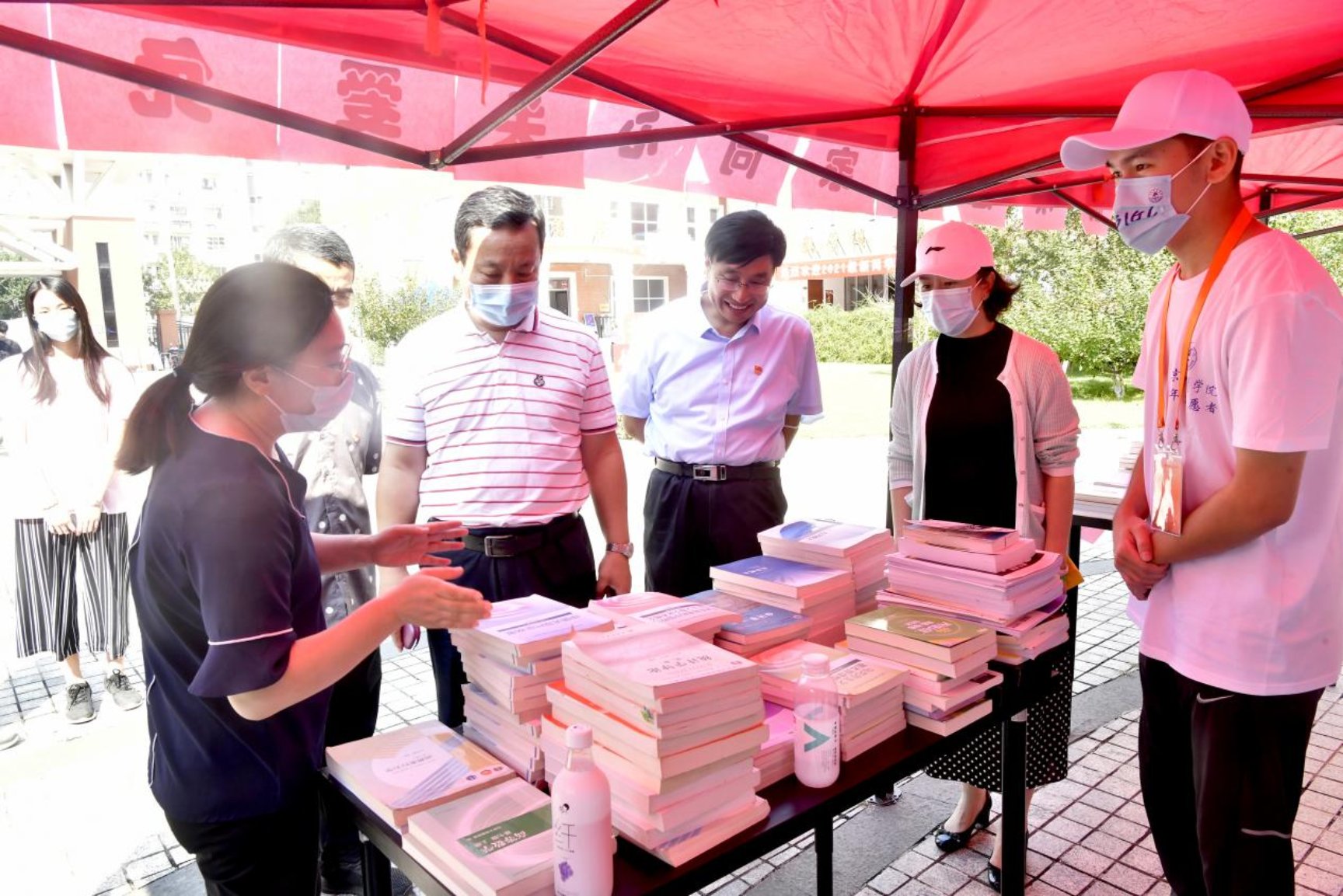 校领导一行视察了体育馆内各职能部门迎新情况,了解了绿色通道报到情况,详细询问了来自河南的同学家里受灾的情况。高锦宏、罗学科代表学校为两位家庭经济困难的新生赠送了生活用品大礼包,希望学子们能够放下包袱,努力学习,不负青春时光。