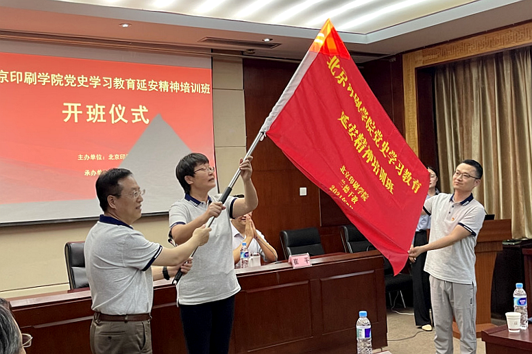 赵盛伟向本次培训班临时党支部授予了班旗,激励参训党员干部高举旗帜永远跟党走,传承弘扬延安精神,强化使命担当,奋进全面建成社会主义现代化强国伟大事业新征程。