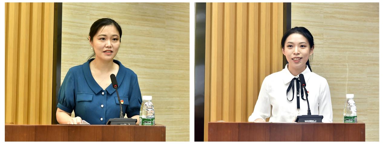 教师代表赵颖(左)、学生代表马璇(右)发言