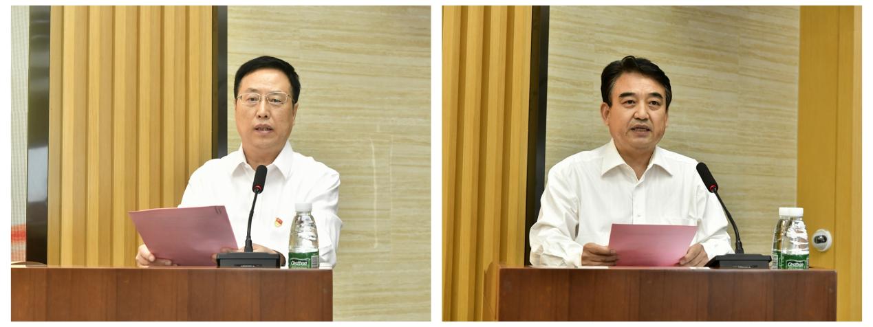 赵盛伟主持大会(左)、王关义宣读2021年教师节表彰名单(右)