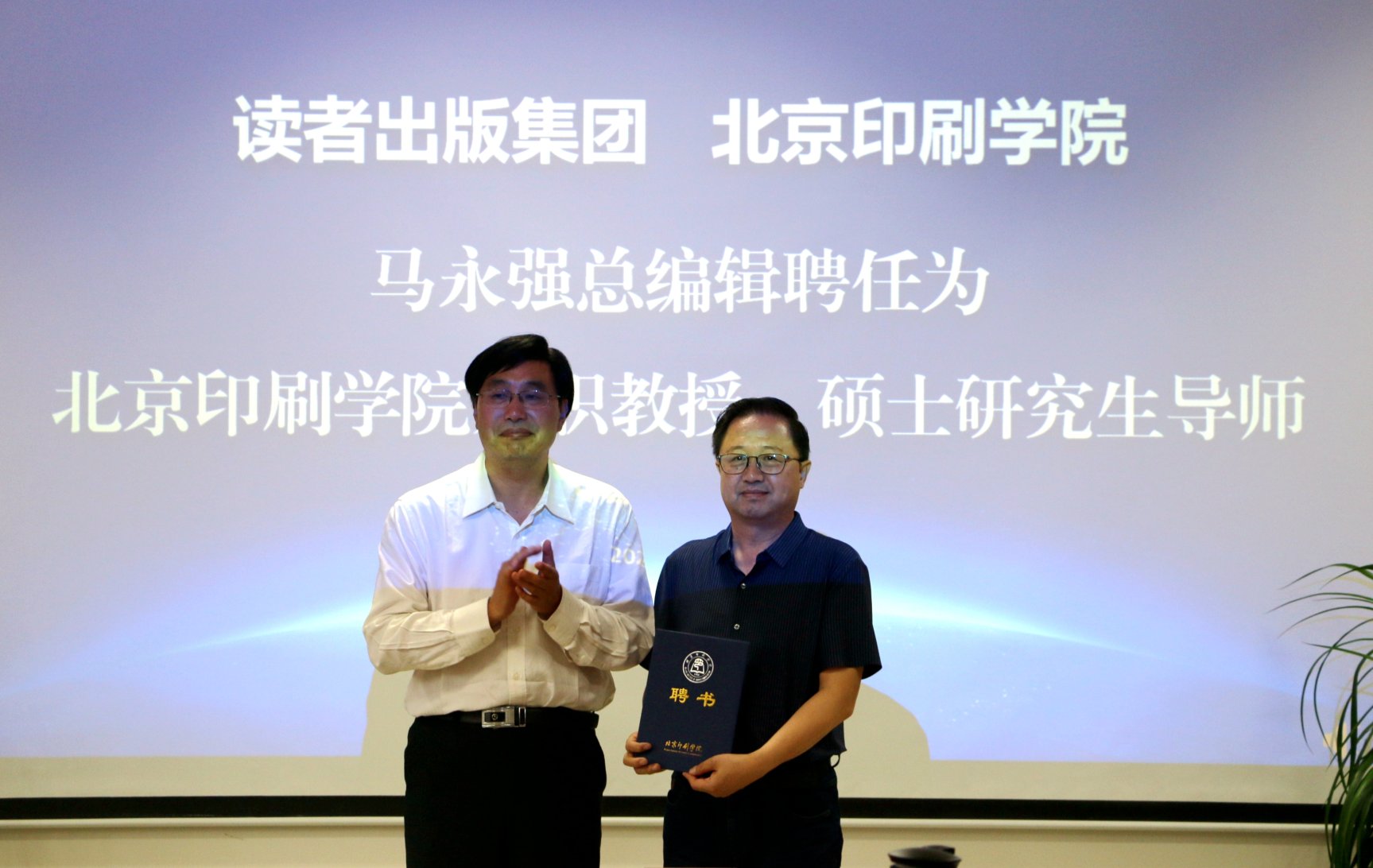 聘请马永强任北京印刷学院兼职教授和硕士研究生兼职导师