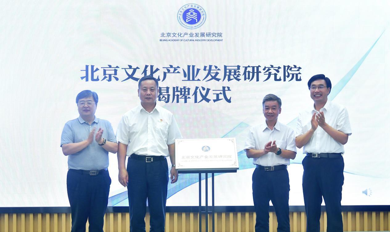 赵恩国、梅松、高锦宏、罗学科共同为北京文化产业发展研究院揭牌,整合政府和高校的资源,增强文化产业研发实力,助推北京文化产业高质量发展。
