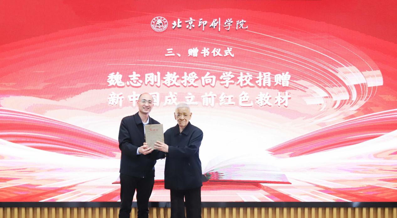 为支持学校育人工作,学校离休老干部魏志刚教授,将收藏的商务印书馆1906年版国文课本、陕甘宁边区1944年版抗战小学课本、东北书店1949年版《毛泽东选集》等300余本珍贵版本的红色教育教材捐赠给学校。学校在马克思主义学院成立“魏志刚教授红色教育教材研究室”,专门开展红色出版文献的收藏、展示、研究等工作。张鑫、魏志刚、马克思主义学院党总支书记高杨文和学生代表共同为研究室揭牌。