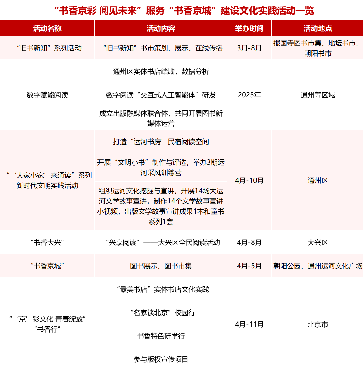 “书香京彩 阅见未来”服务“书香京城”建设文化实践活动一览