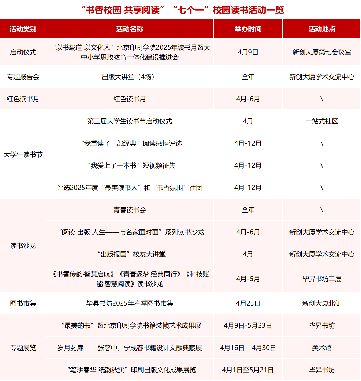 人间四月芳菲盛,正是读书好时节。为深入学习贯彻习近平文化思想,深化学校“以书载道 以文化人”特色思政工作,全面推进“书香校园”建设,推进大中小学思政教育一体化建设,服务全民阅读和“书香京城”建设,在第30个世界读书日即将到来、中国第四届全民阅读大会即将召开之际,北京印刷学院举办2025年读书月系列活动。